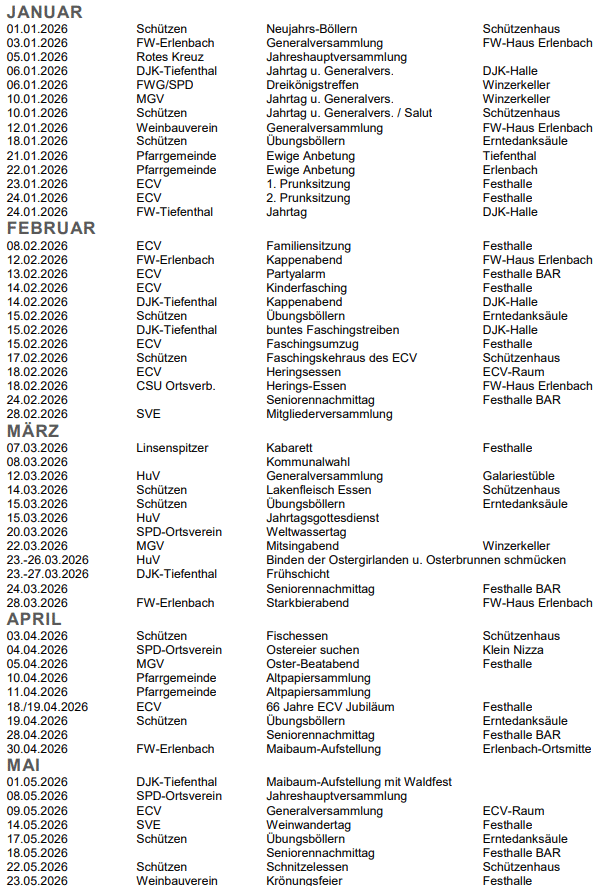 Sie sind hier: Startseite » Vereinstermine 2026